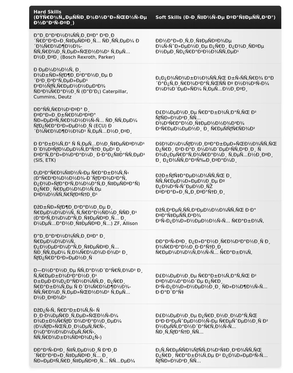 - Что обязательно включить:Вашу ключевую квалификацию (например, опытный механик, специалист по гидравлике).