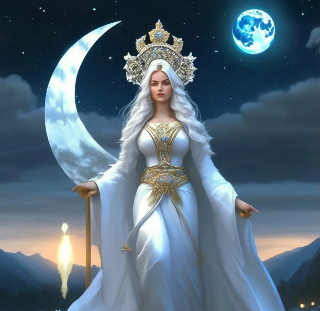 Человек в капюшоне провёл её в комнату, в которой было торжественно и пусто. Лишь в середине почти в кромешной темноте мерцал куполообразный пьедестал на нём сидела девушка необычной красоты Её волосы мерцали бледным светом, серебристый свет падал на её лицо словно пронзая его паутиной из серебра, её одежда ниспадала торжественным складками. Да это и было то самое, что сразу привлекало внимание к ней - торжественность. От неё невозможно было оторвать взгляд, словно ты попал в невидимую паутину, которая затягивала тебя как жертву в какую то сеть и отсюда уже не было выхода. " Это Селена богиня Луны, только она раньше могла наказывать и миловать, даровать жизнь или смерть. Но однажды что то изменилось и на наши земли прилетела птица тени. Никто точно не знал откуда она появилась. Но она принесла с собой беду, раздор . Все королевство стало разделяться, его раздирали междоусобные войны. Селена была мудрой правительницей, но она не терпела вмешательства в своё правление гордыня её была