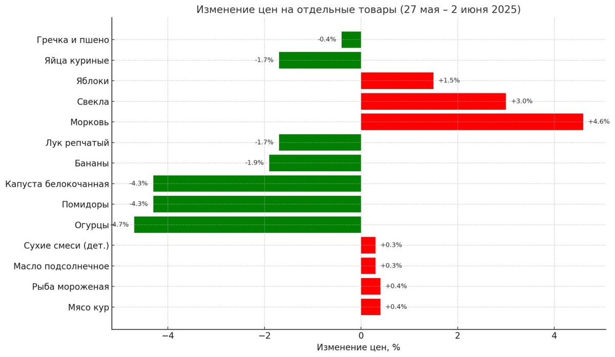 🌊 Свежая оценка Росстата показывает, что с 27 мая по 2 июня индекс потребительских цен вырос всего на 0,05
