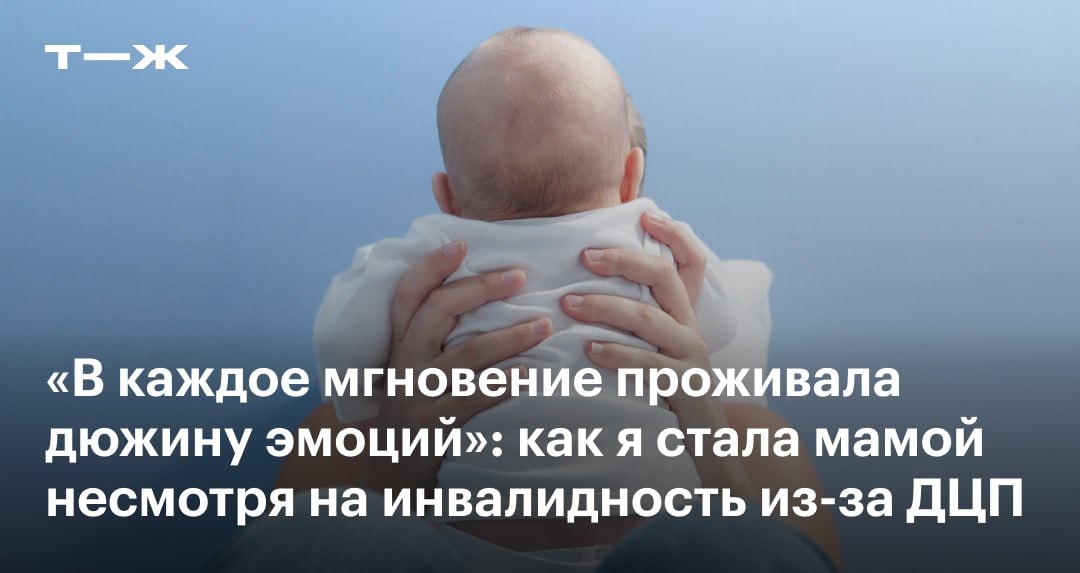 До знакомства с будущим мужем один врач-гинеколог заявил мне: «С таким диагнозом ты не сможешь ни выносить, ни родить». Я тогда не спорила. Просто ушла, проглотив слезы. Мне и самой казалось, что тема родительства для меня закрыта. Но все изменилось три года назад. Я решилась заполнить анкету в паблике знакомств во «Вконтакте». Честно указала, что у меня инвалидность, передвигаюсь на коляске. Не хотела тратить свое и чужое время на бессмысленные разговоры. И однажды мне написал Саша. Мария стала мамой несмотря на ДЦП и прогнозы врачей. Она рассказала о том, как любовь, решимость и большие усилия осуществили ее мечту о материнстве: https://t-j.ru/d-tg/mother-dcp