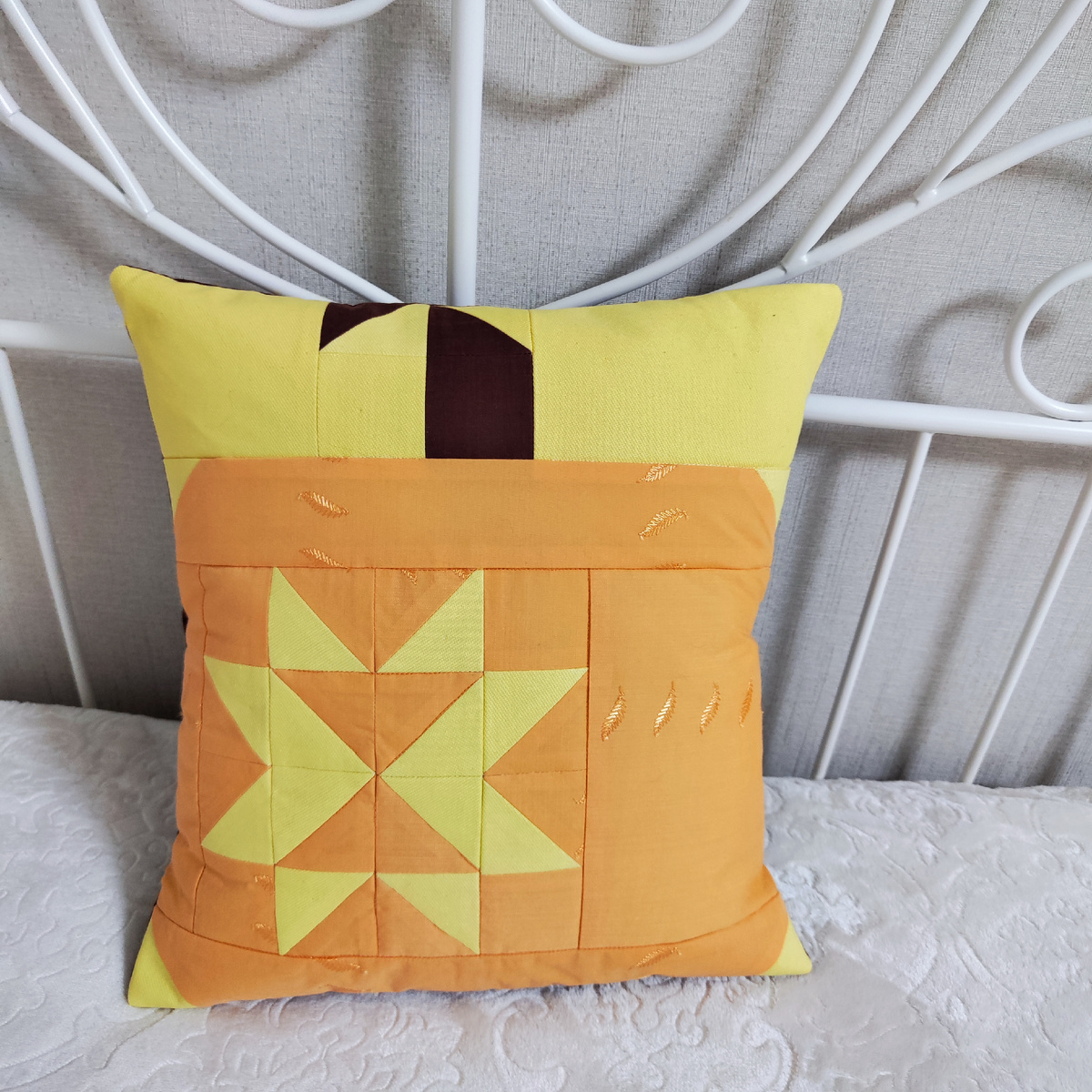 Увидела и захотела сшить, знакомая ситуация? Во-первых чисто визуально понравилась, а во-вторых это для меня определённого рода квест - разгадать как составлен блок, есть ли простой метод сборки и т.д. А здесь ещё интереснее - блок в блоке. Подбор цветовой гаммы ещё один приятный творческий процесс. Расчёты я пока делаю в сантиметрах, но собираюсь освоить и дюймы. Сначала всё вычерчиваю на бумаге с помощью масштабной линейки. Отталкиваюсь от планируемого итогового размера подушки. Ткани использую прежде всего те, что есть в наличии в запасах. Конечно бывают ситуации, что приходится докупать. Бывает, что иду в швейную мастерскую и спрашиваю у них ненужные выпады кроя. Если ткань тонкая, но по цвету подходит, я её стабилизирую клеевым флизелином, самым тонким. Ещё стабилизация нужна, если не соблюдаем при крое долевую нить, а ведь в пэчворке это частая ситуация. Блок в тыкву можно подобрать любой, какой нравится. Его тоже нужно рассчитать, так, чтобы он гармонично смотрелся в тыкве и под
