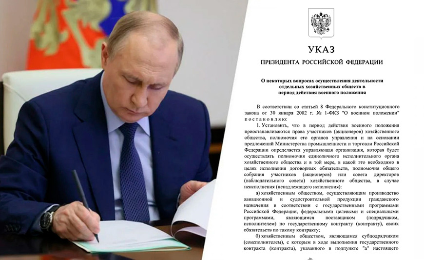 #новости 30 мая 2025 года Президент России Владимир Путин подписал Указ № 355, который вводит возможность временного внешнего управления в авиастроительных и судостроительных компаниях. Эта мера будет применяться в случае нарушения условий исполнения государственных контрактов в период действия военного положения. Документ распространяется как на головных исполнителей, так и на их субподрядчиков и соисполнителей, которые работают над продукцией, связанной с обороной страны или поставляемой по экспортным контрактам. Вопрос о назначении временного внешнего управления будет решаться Минпромторгом России — управляющая организация будет выполнять роль единоличного исполнительного органа компании.