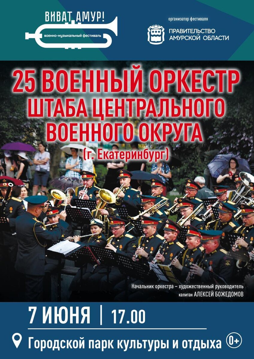 25 Военный оркестр штаба центрального военного округа Екатеринбургского гарнизона выступит с концертом в Белогорске. Свое творчество коллектив представит 7 июня. В управлении по культуре и спорту отметили, что место проведения концертной программы определят погодные условия. — При хорошей погоде концерт запланирован в горпарке, — отметила замначальника Управления культуры и спорта Анастасия Михайлова. — В случае неблагоприятных погодных условий мероприятие пройдет в Доме офицеров Белогорского гарнизона. Сейчас погода не предсказуема, но надеемся, что она не подведет и оркестр выступит в городском парке, на свежем воздухе. В любом случае, это отличная возможность насладиться живой музыкой в теплой атмосфере. Приглашаем жителей и гостей города посетить данное мероприятие. Начало в 17:00. Ранее сообщалось, концерт состоится в рамках военно-музыкального фестиваля «Виват, Амур!». У оркестра обширный музыкальный репертуар: от маршей до классической, эстрадной и народной музыки. Он считается
