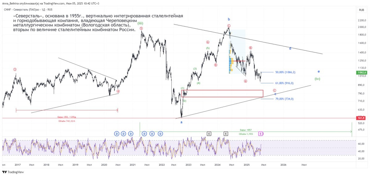 Разметки из видео о голубых фишках росс рынка https://dzen.ru/media/id/65b8789ff12bfe0796a26941/it-video-neftianiki-materialy-68408f51b237623e4f26c157 #ГолубыеФишки #материалы #Металлурги Северсталь #CHMF Северсталь продолжает движение в треугольнике. Номинально можно было бы завершить снижение в волне с треугольника. Тем не менее, предположу её усложнение и снижение в обозначенный на графике целевой диапазон. Подробнее о движении на младших степенях в видео. Не является ИИР 💪 Бот Закрытого Канала и Еженедельных звонков