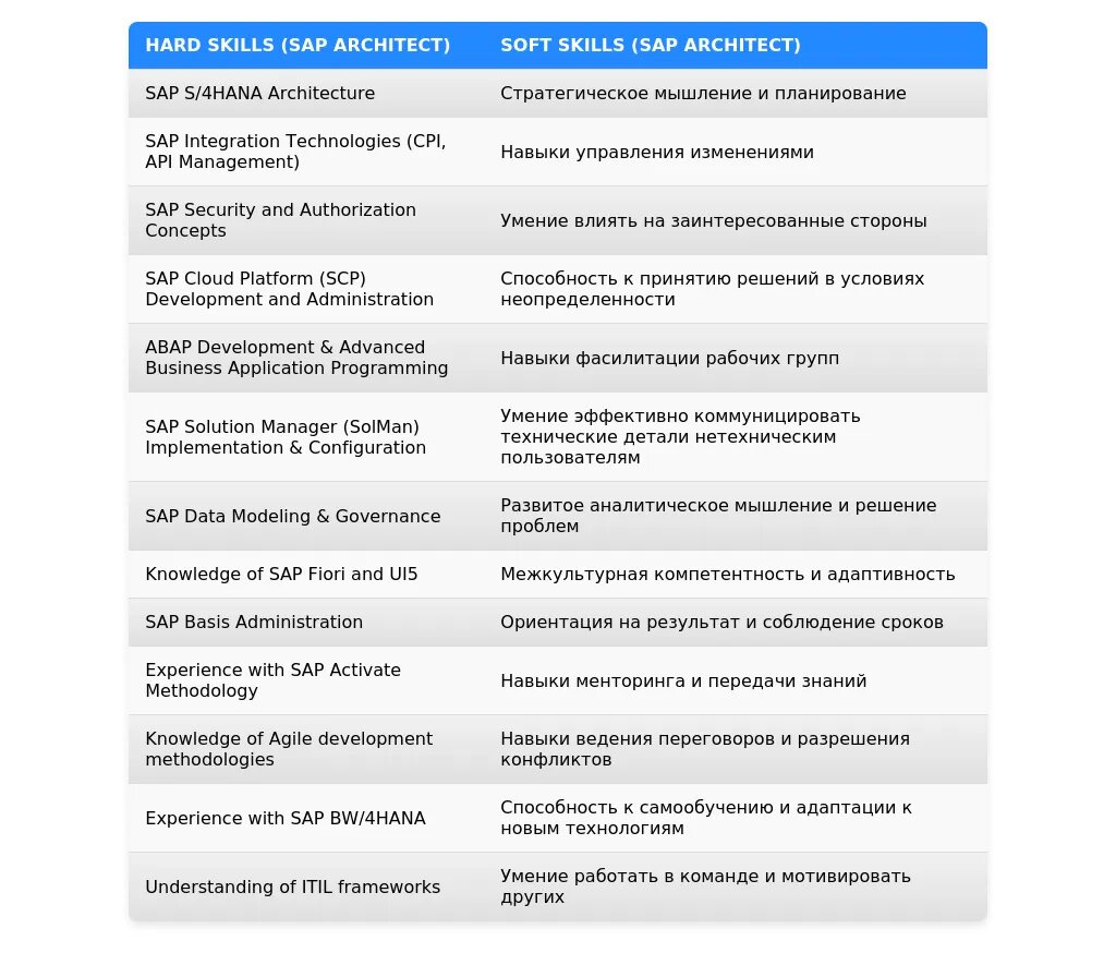 Раздел "Навыки" – это ваш шанс продемонстрировать работодателю свои ключевые компетенции и знания. Адаптация этого раздела требует перегруппировки навыков и выделения тех компетенций, которые наиболее важны для конкретной вакансии SAP архитектора.