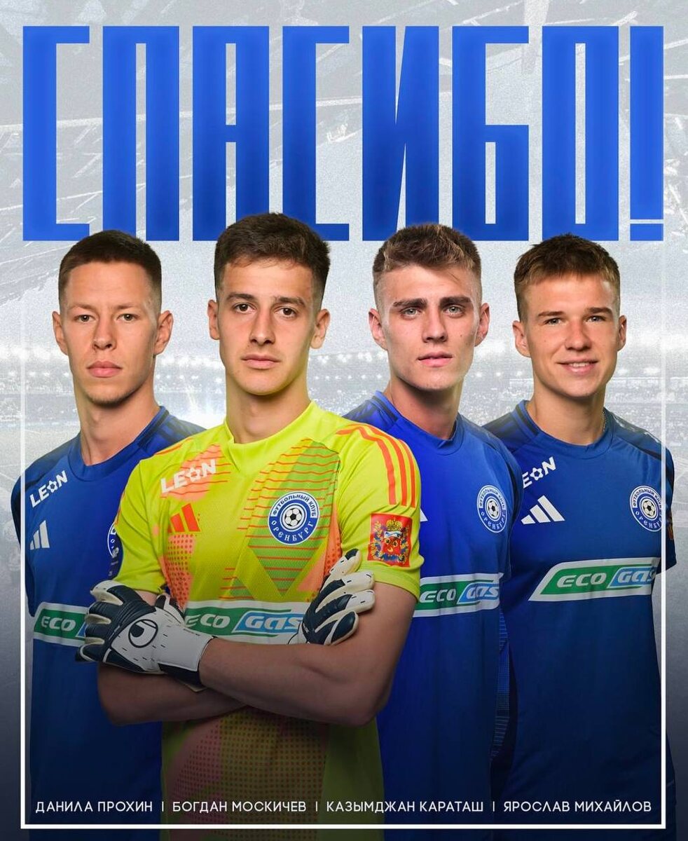 🚨 Данила Прохин, Богдан Москвичев, Казымджан Карташ и Ярослав Михайлов покинули футбольный клуб «Оренбург», в связи с истечением сроков