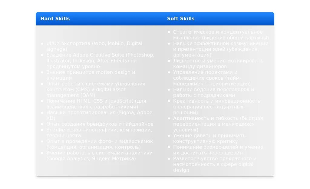 Адаптация раздела "Навыки" для арт-директора (digital)