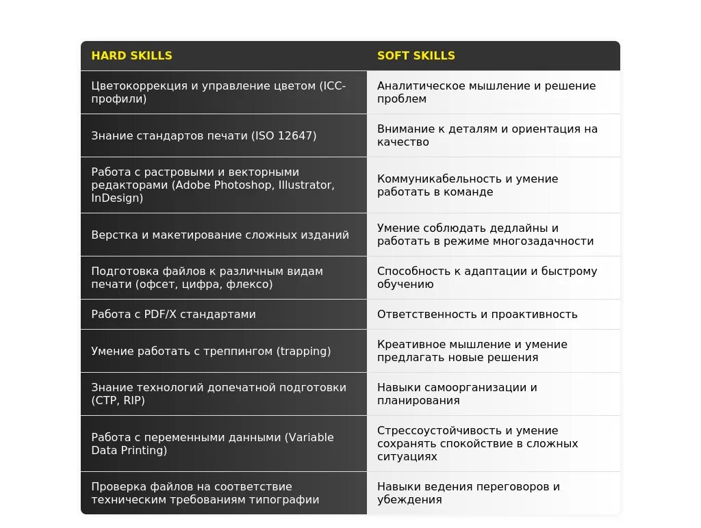 Адаптация раздела "Навыки" для специалиста по предпечатной подготовке