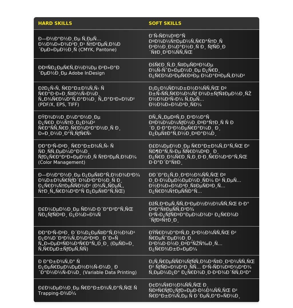 Адаптация раздела "Навыки" для специалиста по допечатной подготовке