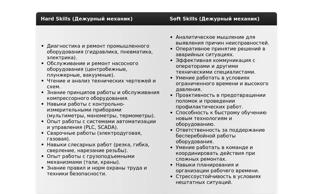 - Слишком общее описание: Вместо "Имею опыт работы с различным оборудованием" напишите "Обслуживал и ремонтировал промышленное оборудование (токарные станки, компрессоры, насосы) на предприятии X".