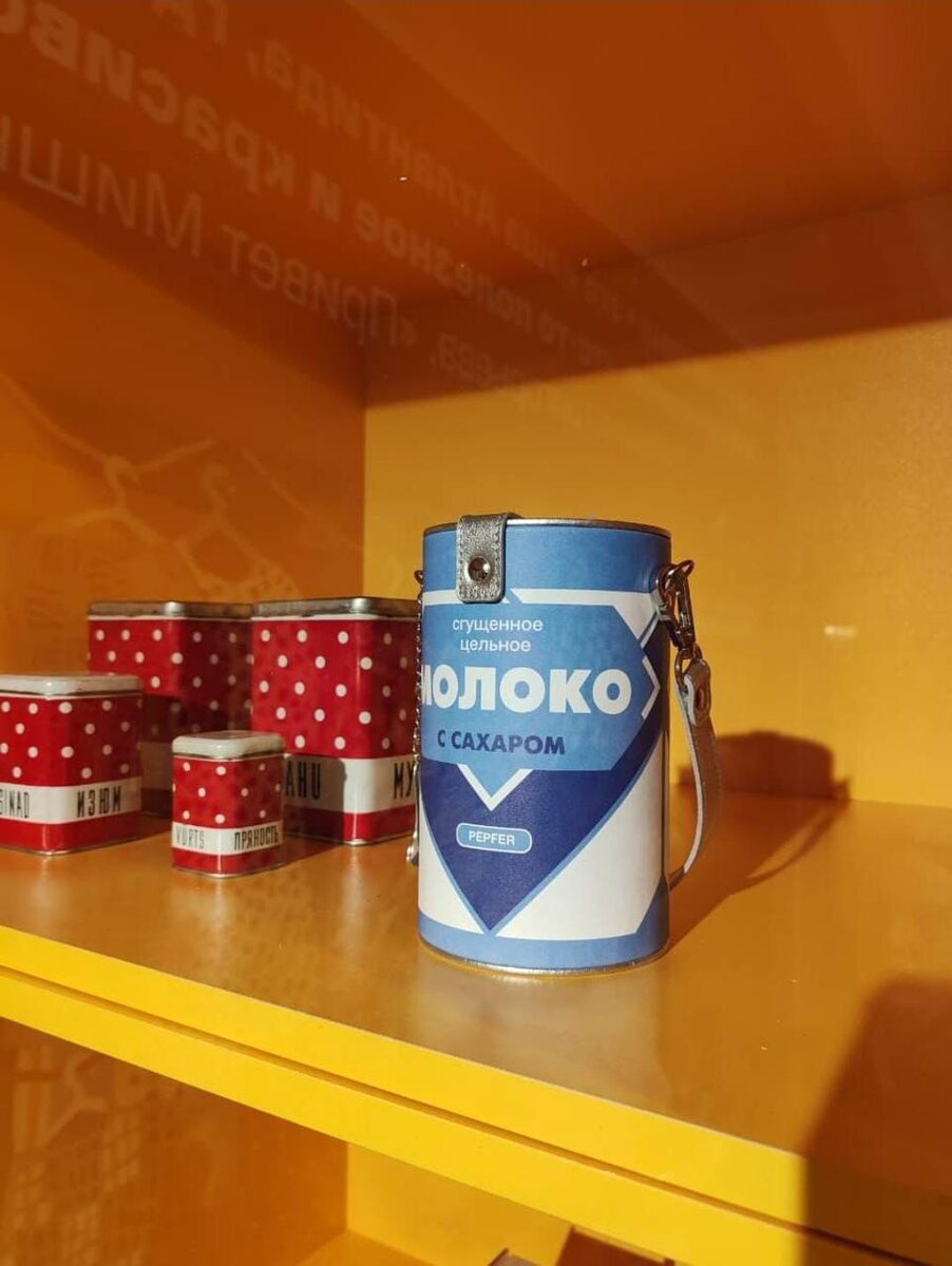 Сумка «Сгущенка» из коллекции бренда PEPFER (тот самый фаворит актрисы Орнеллы Мути и её дочери Найке Ривелли) стала экспонатом на выставке «110 | Российский дизайн 1915–2025» в Третьяковской галерее. Сумка в виде банки сгущёнки — это не просто аксессуар, а культовый арт-объект бренда. При создании дизайна этой модели дизайнер вдохновлялся эстетикой ретрофутуризма. Сумка точно повторяет форму и детали классической банки сгущёнки — от характерной этикетки до металлического блеска фурнитуры. Сумка «Сгущенка»