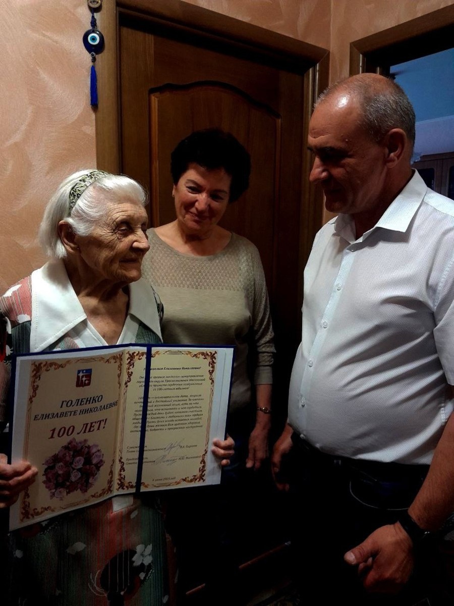 4 июня, свой 100-летний юбилей отмечает труженица тыла, ветеран труда и преподаватель истории со стажем в полвека Елизавета Николаевна Голенко. Тепло и, как всегда, душевно глава Краснознаменска Владимир Пирогов совместно с председателем Совета депутатов Александром Мостковым поздравили Елизавету Николаевну, вручив ей памятные подарки. Именинница была тронута вниманием. С дрожью в голосе она рассказала про годы войны — как строили мосты, как помогали фронту, как было жутко страшно… Мы преклоняемся перед Вашей стойкостью и мужеством. Отдельно благодарим за то, что целым поколениям учеников сумели передать страницы подлинной истории России, развивая патриотизм, силу духа, любовь к Родине. Низкий поклон Вам, дорогая Елизавета Николаевна, и пожелания доброго здоровья, внимания и заботы родных, лёгкости на сердце и в походке! (c) Администрация города