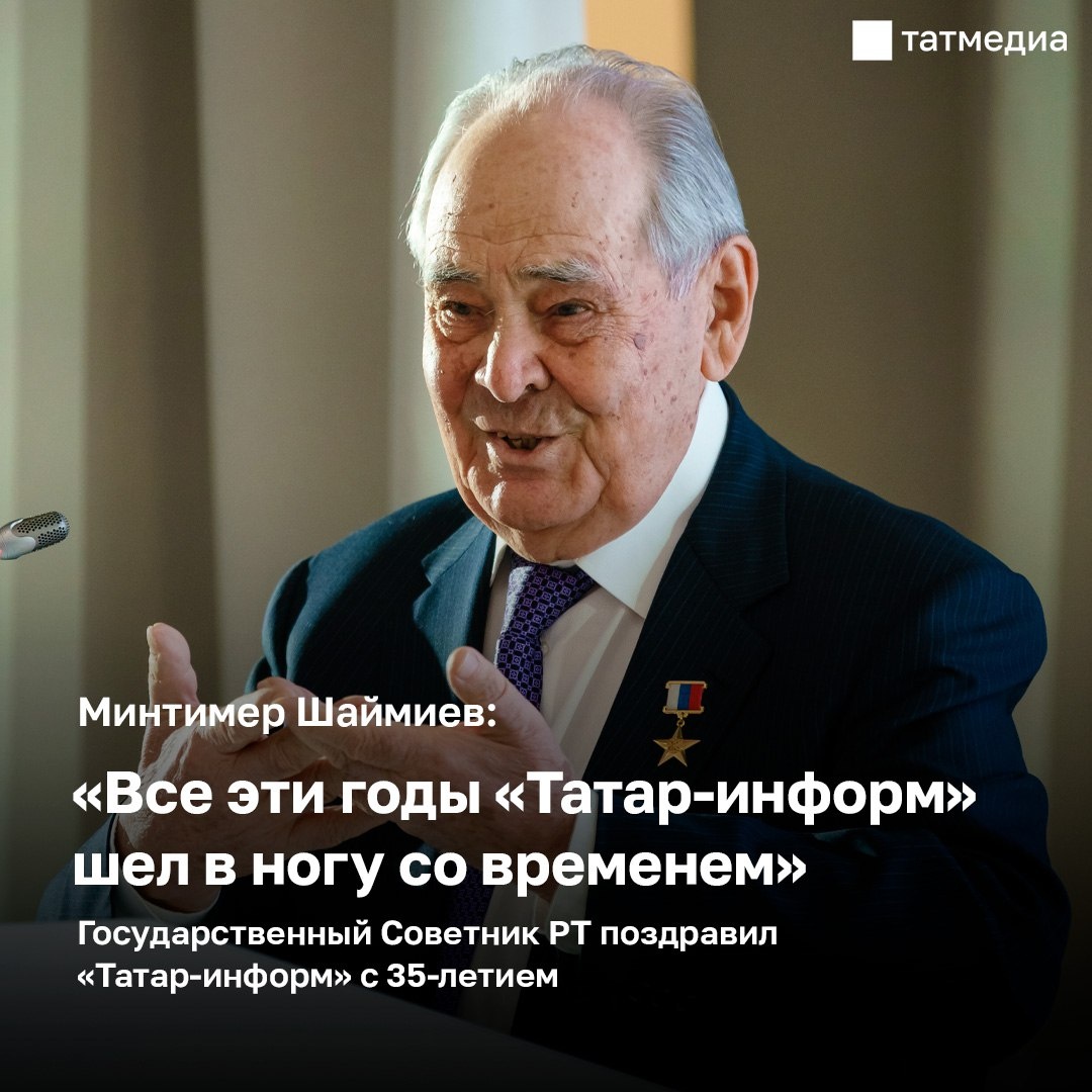 В ответ на пост 🎉👨💻Завтра «Татар-информ» отметит 35 лет со дня создания С праздником коллектив агентства поздравил Первый Президент Республики Татарстан, Государственный Советник Республики Татарстан Минтимер Шаймиев, который и подписал Постановление бюро Татарского обкома КПСС 6 июня 1990 года, будучи его Первым Секретарем. Приводим поздравление полностью. @tatmediaofficial
