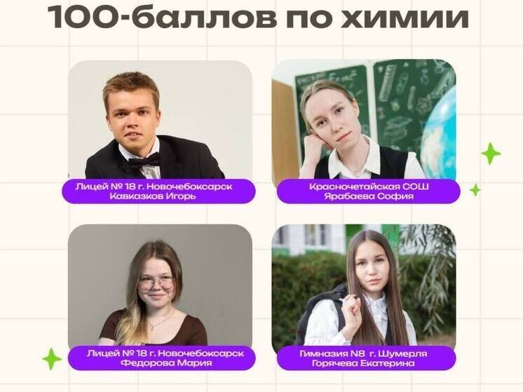Министр образования Чувашии Дмитрий Захаров поделился радостной новостью — стали известны имена первых выпускников республики, получивших 100 баллов на ЕГЭ в этом году. И это сразу 12 человек, и все — по химии, одному из самых сложных и многогранных предметов. «Поздравляю ребят с этой достойной победой! Вы — гордость нашего региона!» — отметил министр. Вот имена отличников: София Ярабаева (Красночетайская СОШ) Мария Федорова и Игорь Кавказков (Лицей №18, Новочебоксарск) Екатерина Горячева (Гимназия №8, Шумерля) Полина Нимакова (Гимназия №5, Чебоксары) Анастасия Никитина и Ольга Степанова (Лицей №3, Чебоксары) Анна Федотова (Гимназия №1, Чебоксары) Антон Пигузов (СОШ №62, Чебоксары) Виктория Адюкова, Злата Александрова и Ярослав Кутилин (Лицей №2, Чебоксары) ЕГЭ по химии — экзамен, требующий не только отличных знаний теории, но и умения быстро и точно решать задачи, понимать процессы на молекулярном уровне. Тем ценнее и значимее успех этих ребят — каждый балл дался упорным трудом и мног