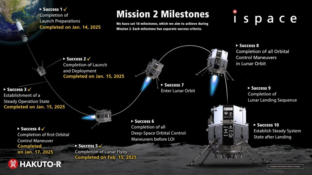 Сегодня вечером, в 19:17 по Гринвичу, будет предпринята попытка посадки лунника Resilience, также называемого Hakuto-R2, японской компании iSpace. Предшественник, Hakuto-R, в 2022-м году сумел снизиться и сбросить скорость, но в нескольких километрах от поверхности, из-за неправильно введенной точки посадки. Соответственно топливо закончилось, и лунник упал и разбился. Японцы известны тем что выбирают очень длинные (но экономичные) траектории к Луне: Resilience был запущен еще в Январе, вместе с другим лунником Blue Ghost, который за это время сумел не только успешно сесть, но и провести свою полную программу исследований. На борту находится небольшой луноход Tenacious, сделаный европейским отделением iSpace. Источник