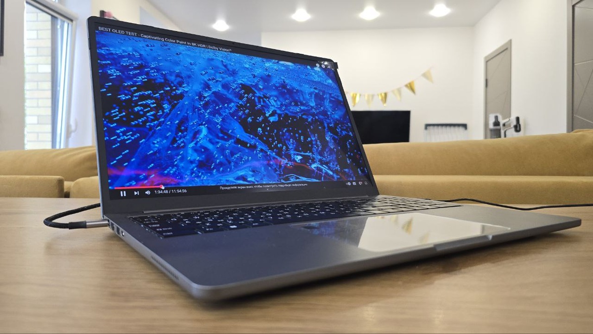 Экран оказался сильной стороной устройства. Без калибровки он показал точную цветопередачу, стабильную гамму и почти полное покрытие sRGB. Уровень яркости и контрастности комфортен для длительной работы, а заводские настройки не требуют срочной доработки. Автономность на практике составила чуть больше пяти часов в офисной нагрузке, что соответствует заявленному уровню и подходит для работы вдали от розетки.