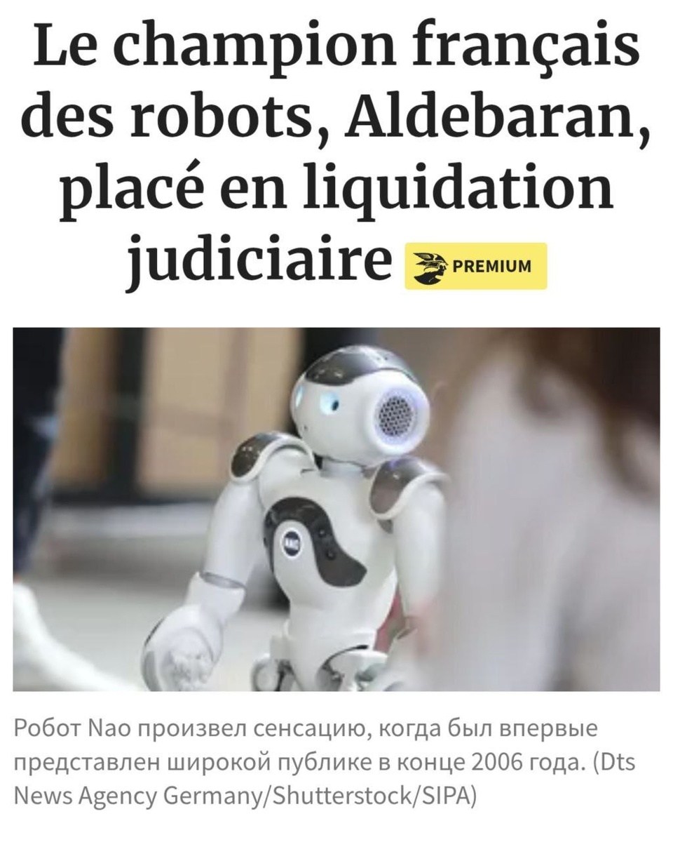 Главная компания Франции по робототехнике признана банкротом. Коммерческий суд Парижа объявил в понедельник о ликвидации производителя популярных человекоподобных роботов Nao и Pepper.