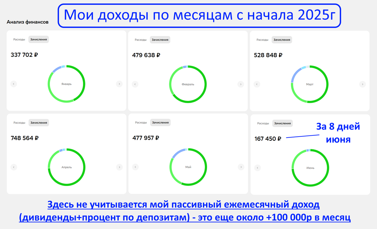 Ну и стоит добавить, что такой доход не даётся легко! Последние 5 лет я жил по принципу: "Работа → Инвестиции → Деньги → Ещё больше денег", а всё остальное для меня не имело значения. Личная жизнь, здоровье, простые радости - всё это откладывалось "на потом". Но в этом проблема, кажется, что "ещё немного — и тогда заживу"!