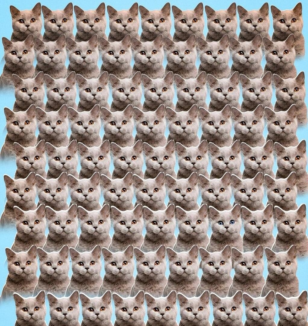 Проверим вашу наблюдательность? Рассмотрите изображение с милыми котиками. Все, что вам нужно сделать, – это найти голубоглазого пушистика среди кареглазых. 😻