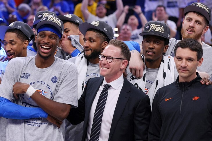 Если Фила Джексона называют «Дзен-мастером», то Сэма Прести впору именовать Карлсоном – так он уважает мантру «спокойствие, только спокойствие». Никаких скоропалительных выводов, минимум резких телодвижений – но если уж Прести делает на кого-то ставку, то доверяет этому человеку по-максимуму. Так было и в августе 2021-го, когда «Оклахома» внезапно для многих выдала максимальный контракт (172 млн за пять лет) Шэю Гилджес-Александру. «Тандер» тогда пока только-только вставали на ноги, но Прести уже разглядел в 23-летнем игроке будущую звезду. И не прогадал – еще до истечения этого соглашения парень трижды попал в сборную сезона и стал MVP регулярки. В сезоне-2024/25 лучший игрок лиги обошелся «Оклахоме» всего в $35,8 млн – а это столько же, как «Денвер» платит Майлу Портеру или «Новый Орлеан» тратит на Зайона Уильямсона.