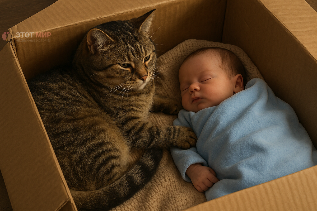 История о бездомной кошке, которая стала для младенца единственным шансом выжить. Это случилось зимой, в одном из районов Обнинска, Россия. На дворе было минус пятнадцать. Пронизывающий ветер и сухой снег, забивающий глаза. Люди торопливо заходили в подъезд, не замечая ничего — кроме одной старой кошки, которая всегда лежала у батареи у входа. Она была местной. Её звали Маша. Той ночью Маша не просто изменила маршрут. Она сделала выбор. Жильцы слышали, как она мяукала и металась, будто зовя кого-то. Одна из соседок, Ирина Лаврова, вышла проверить — и замерла. «Я увидела коробку, — вспоминала она, — а в ней лежал младенец. Он был укутан, но лицо — совсем холодное. А рядом — Маша. Она лежала, прижавшись к нему всем телом, как будто старалась его согреть». Кошка не ушла, даже когда прибежали люди. Она шипела на тех, кто хотел взять ребёнка, будто говорила: не навредите ему. Когда младенца забрали в больницу, она долго сидела у входа, ожидая. Скорая приехала быстро. Мальчика (это был мальч