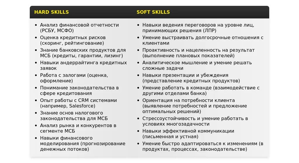 Ключевые навыки, релевантные для кредитования МСБ (например, анализ финансовой отчетности, оценка кредитных рисков, знание нормативной базы).