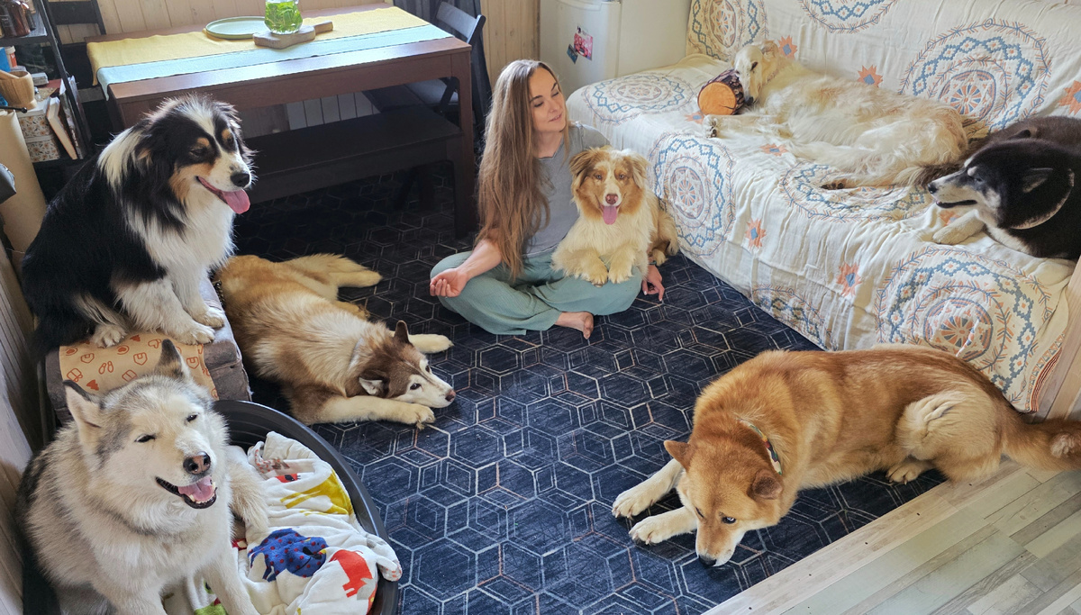 Конечно, у нас есть и вольеры, и участок земли, на котором собаки могут находиться без нашего контроля, но уметь жить дома должны все без исключения! Это моё глубокое убеждение, основанное на годах работы с животными, ведь стареющие, болеющие, в сильный мороз или в жару - собаки непременно отправляются под контроль хозяина. Не готов к собаке в доме? Не заводи! Экстренных ситуаций, которые потребуют нахождения питомца на вашем диване - гораздо больше, чем можно предусмотреть заранее.