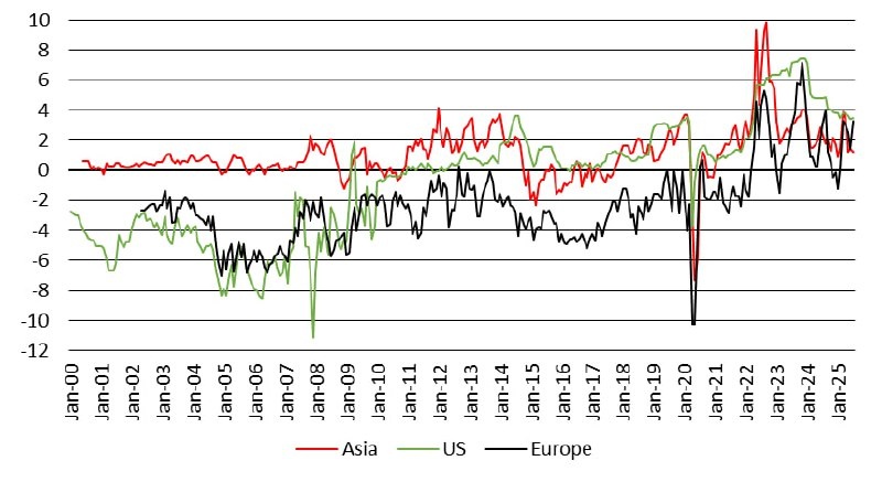 На рисунке премия, которую взимает Саудовская Аравия по сравнению с бенчмарком, видно, что в последние годы премия постоянно положительна, т.е. покупатели платят больше, чем стоит нефть на бирже.