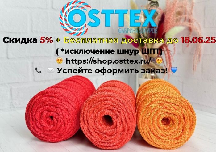 Акция скидка 5% + бесплатная доставка! #вяжу #вяжусама #вяжуслюбовью #вяжунетужу #вяжетнетолькохурма #вяжутвсе #вяжупродаю #макрамедекор #макрамекашпо #макраменазаказ #шнурполиэфирный #коверизполиэфирногощнура #корзинкиизполиэфирногошнура #шнурдлярукоделия #макраме #вяжутнетолькобабушки #вязание #пано #люблювязать #магазиншнуров#осттекс #сумкиизшнура #пряжа #джутовыйшпагат #джутовыйковер #нитьдлямочалок #wildberries #ozon #aliexpress