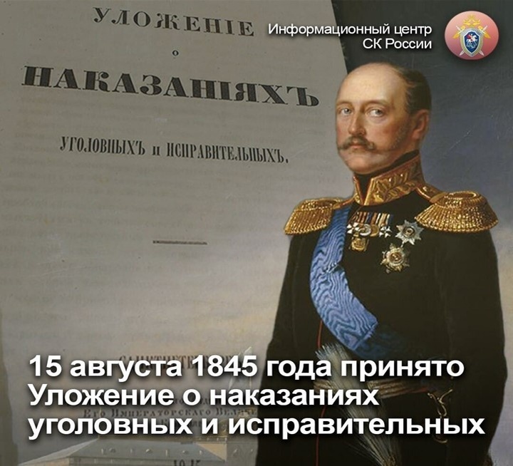 15 Августа 1845 года принято Уложение о наказаниях уголовных и исправительных
