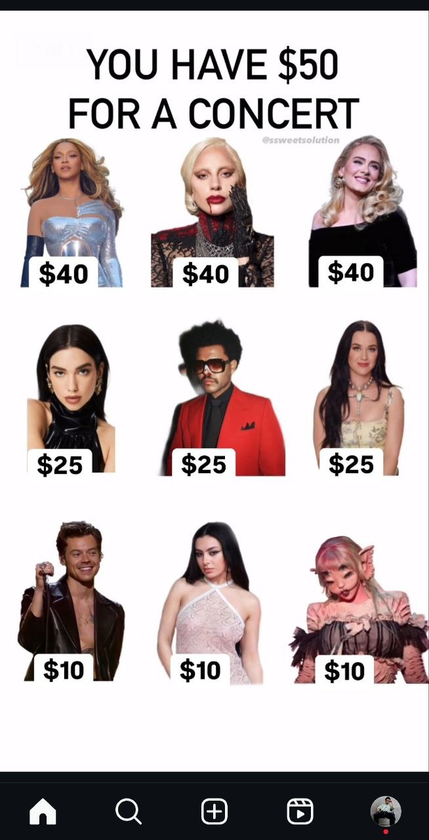 💵 у тебя только 50 долларов. на чей концерт идёшь?