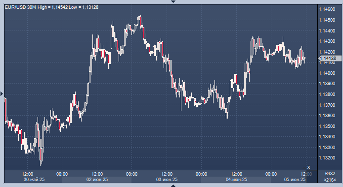 Слабые экономические данные и неопределенность в торговле оказывают давление на доллар. Евро стабилен в преддверии ожидаемого снижения ставки ЕЦБ. Инвесторы ждут звонка Трампа и Си, торговых соглашений. Слабость доллара сохранится — опрос Reuters График евро/доллара интервалами в 30 минут В преддверии ожидаемого снижения процентной ставки Европейским центральным банком в четверг, евро стабилизировался вблизи шестинедельного максимума по отношению к доллару. В то же время американская валюта немного восстановилась после падения, вызванного данными, которые вновь вызвали опасения по поводу медленного роста и высокой инфляции. Данные, опубликованные в среду, показали, что в мае сектор услуг США сократился впервые за почти год, а также ослабление рынка труда. Это привело к росту цен на казначейские облигации и увеличению вероятности дальнейшего снижения ставок Федеральной резервной системой в этом году. «Большую часть недели мы оставались в относительно узких диапазонах... вчера доллар осл