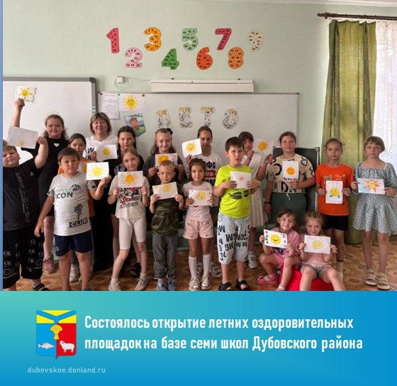 2 июня состоялось открытие летних оздоровительных площадок на базе семи школ Дубовского района: Вербовологовской СШ №6, Гуреевской СШ №8, Мирненской СШ №11, Дубовской НШ №1, Барабанщиковской СШ №4, Мало-Лученской КОШ №13 им. Я.П. Бакланова, Присальской СШ №10.