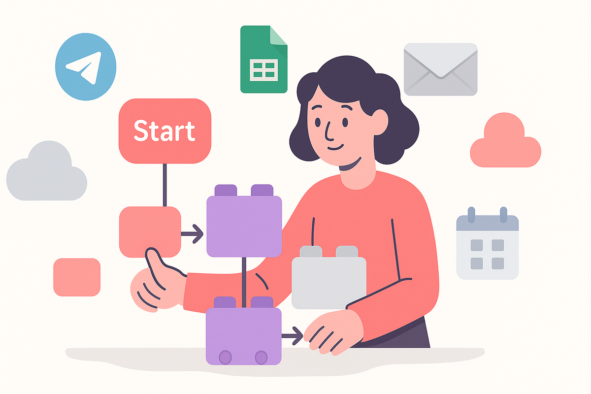 Каждый день мы повторяем десятки однотипных действий: ⛔️ Всё это съедает время и энергию, особенно если вы работаете один или в небольшой команде. Хорошая новость: большую часть этих задач можно поручить автоматике. Без программиста. Без кода. Без боли. n8n (н-ейт-н) — это платформа автоматизации. Она помогает соединить сервисы (Telegram, Google Таблицы, CRM, AI и т.д.) и настроить между ними цепочки действий.