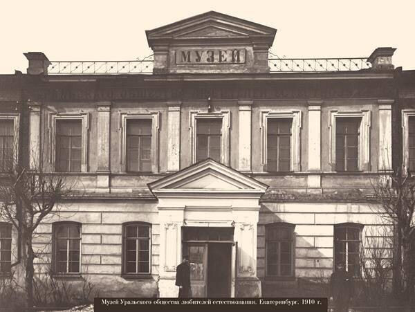 Фотография музея УОЛЕ в 1910 году. К тому времени музей представлял собой богатейшее собрание природных и исторических экспонатов, которых насчитывалось более 25 тысяч. Они подразделялись на 10 отделов (ботанический, зоологический, палеонтологический, минералогический, геологический, энтомологический, антропологический, археологический, этнографический, нумизматический) и 2 коллекции (историческая и художественная). 16 октября 1910 года городская дума приняла решение отвести бесплатно УОЛЕ под постройку здания музея участок городской земли на Дровяной площади, сзади нового театра. 19 февраля 1911 года, в день 50-летия освобождения от крепостного рабства, состоялась торжественная закладка нового здания музея УОЛЕ. Но разработка проекта началась лишь летом 1913 года, а вскоре вспыхнула первая мировая война. Средства на строительство нового музея не выделили, и он так и остался на бумаге.