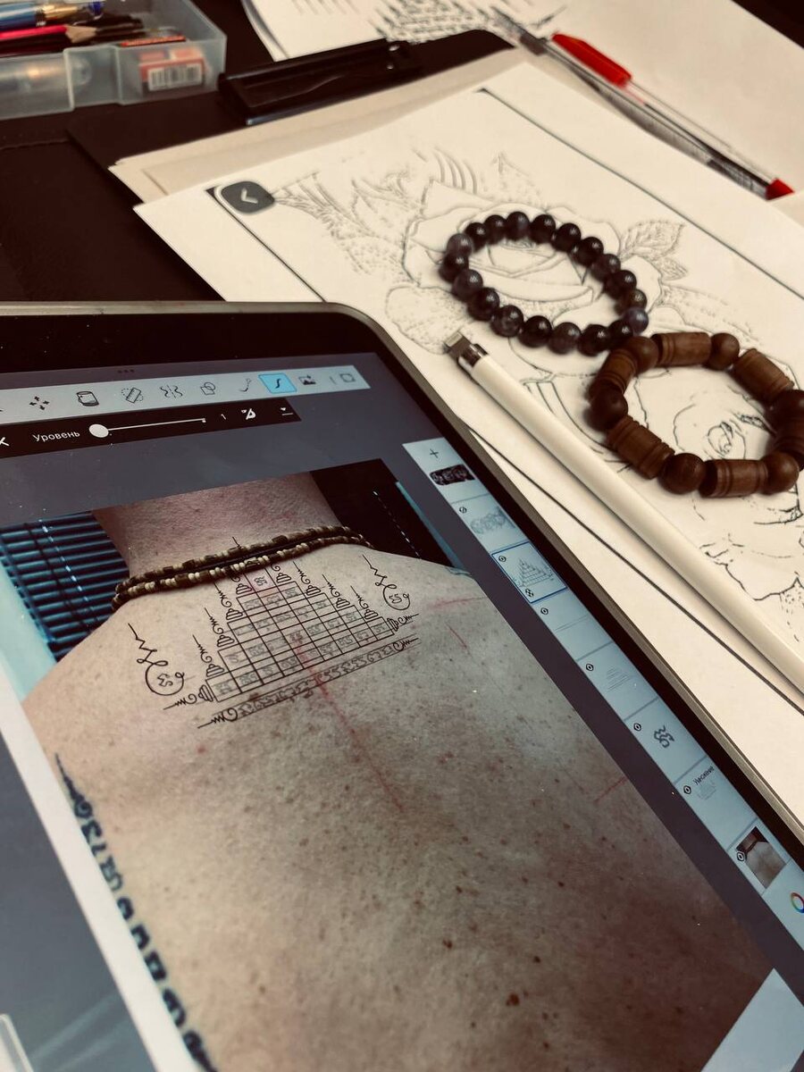 Backstage. Продолжаем проект. Сделали комбинацию из 9 Шпилей ( не стандартный дизайн ) дополненные двумя элементами. Комбинация. Традиционная техника нанесения. В следующих постах, чуть подробнее расскажу о комбинации. И будет больше фото и видео с процесса. Связаться со мной 👉 ✅ http://Wa.me/+79030064490 #подготовка #татупроцес #сакянт #фото #татупроцес