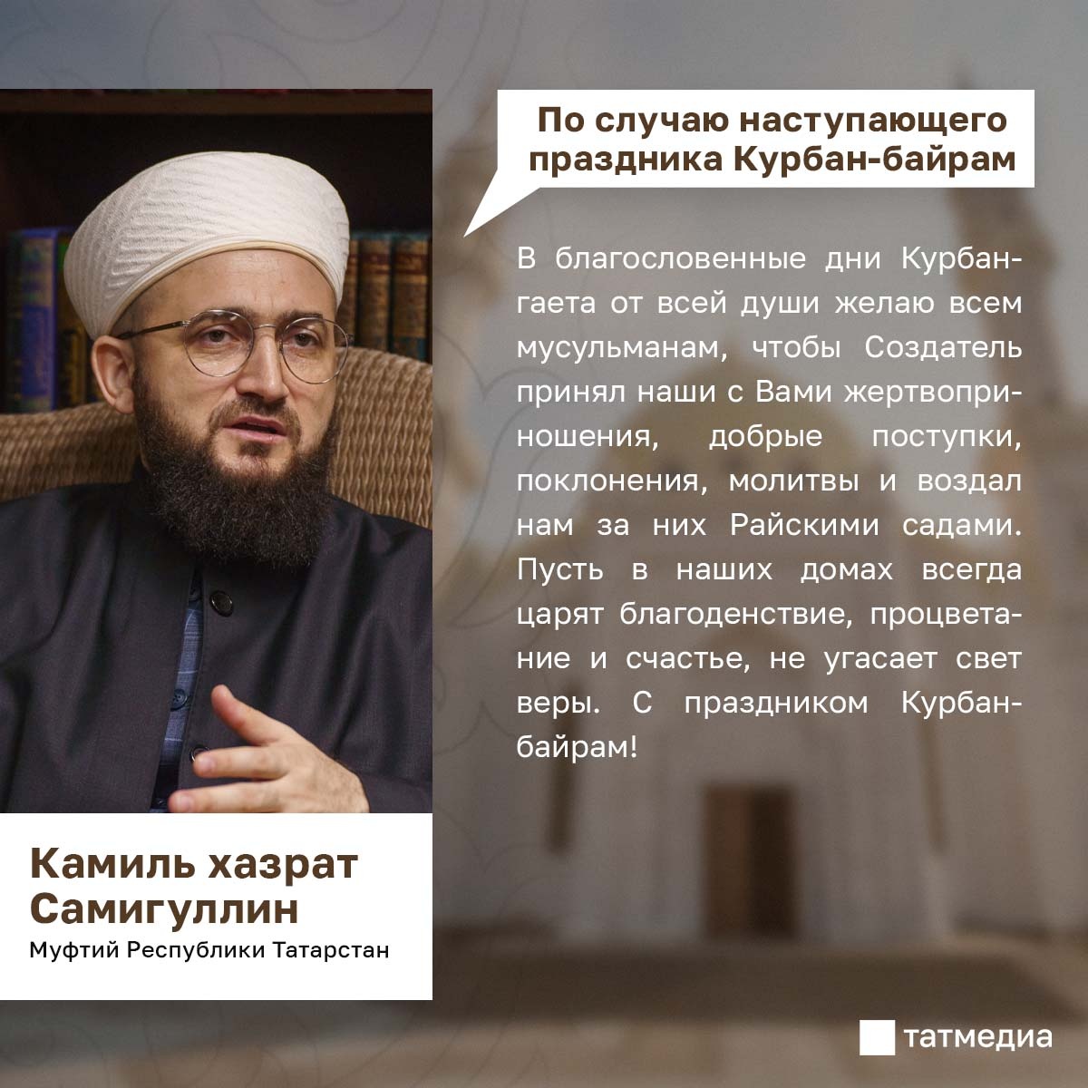 В ответ на пост ☪️🙏Камиль хазрат Самигуллин поздравил с Курбан-байрамом и напомнил о духовной сути праздника В обращении муфтий отметил, что Курбан-байрам – это не только день радости и единения, но и возможность приблизиться к милости Всевышнего через жертвоприношение, которое символизирует искреннее самоотречение, благодарность и стремление к довольству Аллаха посредством добрых дел и помощи нуждающимся. Камиль хазрат напомнил, что в Коране говорится о великом благе – аль-Кяусар - реке в Раю. Он добавил, что кто-то встречает праздник в хадже, кто-то – дома с близкими, а бойцы, участвующие в специальной военной операции, – на передовой, исполняя свой долг. От имени всех мусульман республики муфтий передал им слова благодарности и теплые поздравления. Камиль хазрат поблагодарил солдат за возможность отмечать праздник под мирным небом и пожелал им защиты от Всевышнего и победы в борьбе с врагом. @tatmediaofficial