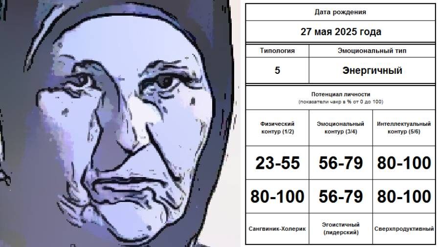 Близнецы для родившихся 27 мая 2025 года Наука на месте не стоит, ученые могли и не знать, но… у людей, родившихся 27 мая 2025 года, есть близнецы: Мария Авксентьевна Примаченко — украинская народная художница Родилась 30 декабря 1908 года в селе Болотня (ныне Иванковского района Киевской области Украины), где и провела всю жизнь [1]. В 1936 году окончила Школу народных мастеров и стала принимать активное участие в различных выставках. В 1937 году рисунки Примаченко получили золотую медаль на I Международной выставке в Париже. В 1960 году награждена орденом «Знак Почёта». В 1966 году получила Государственную премию УССР имени Т. Г. Шевченко за цикл художественных работ «Людям на радость». В 1970 году получила звание Заслуженого деятеля искусств УССР, а в 1988 году — звание Народного художника УССР. Создала более 500 художественных работ, а также школу-студию оригинального декоративного письма, в которую привлекала талантливых детей. Их всех объединяет: пятая типология; энергичный тип п