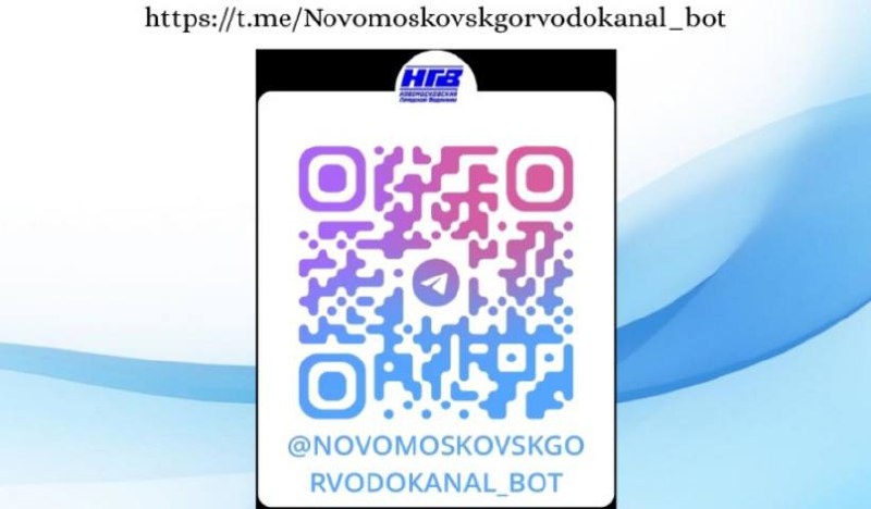 ⚡️⚡️Новомосковский водоканал изменил порядок передачи показаний счётчиков: теперь служба принимает данные через мессенджер Telegram «WhatsApp* больше не будет принимать показания прибора учёта воды. Теперь показания воды можно будет передать при помощи Telegram», — говорится в сообщении ООО «Новомосковский городской водоканал». Для передачи показаний необходимо отсканировать QR-код, затем нажать «старт». Либо перейти по ссылке https://t.me/Novomoskovskgorvodokanal_bot. Дальнейший алгоритм действий осаётся такой же, какой был в предыдущем мессенджере. *- принадлежит Meta, деятельность которой признана в России экстремистской и запрещена