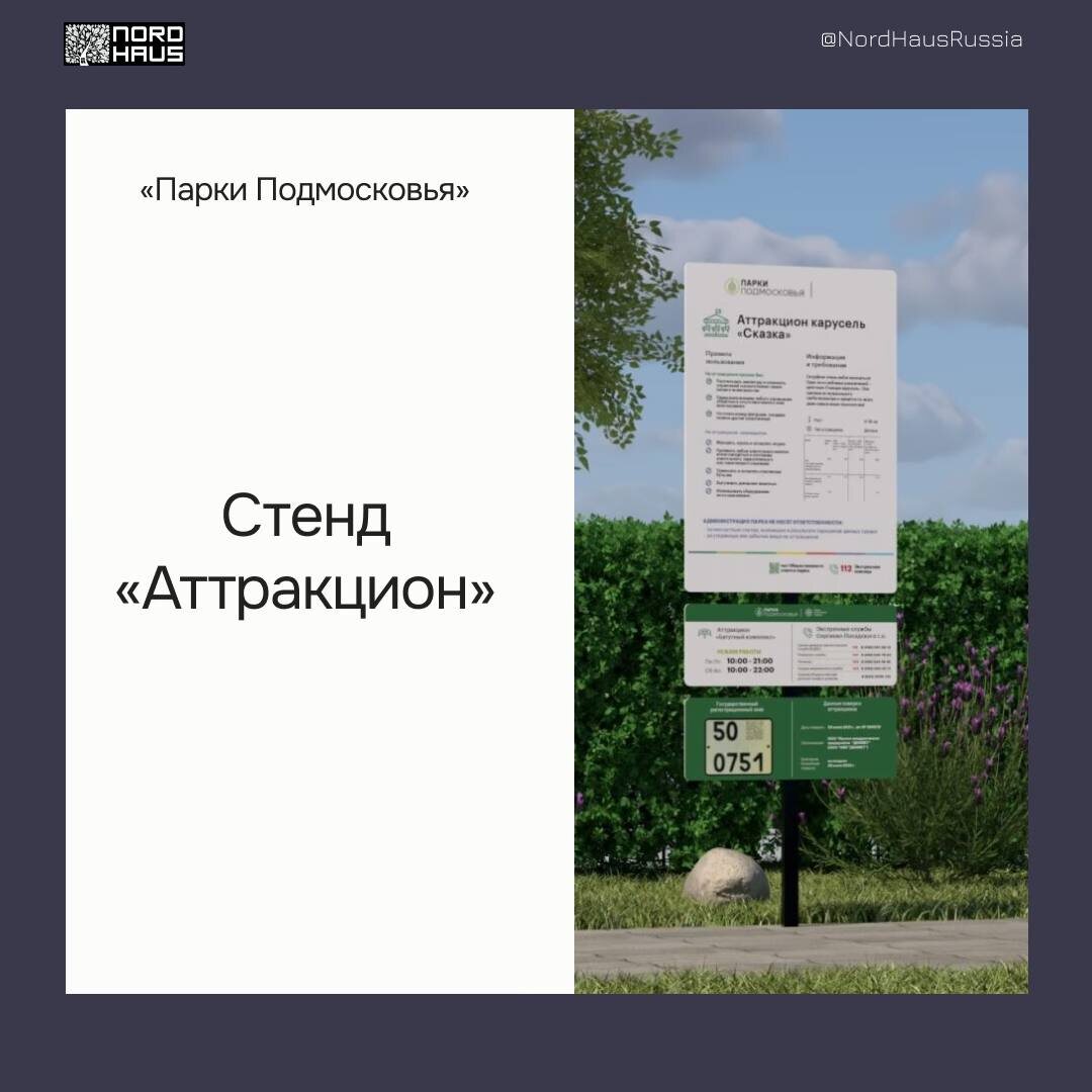 Стенд «Аттракционы» из коллекции «Парки Подмосковья» Устанавливается вблизи входа на аттракцион и предназначен для размещения важной информации: правила пользования и расписание, технические характеристики, контактная информация и данные о аттракционе. Конструкция включает основной модуль и нижние блоки, которые оформлены в едином стиле коллекции. Дополнительно на нижнем блоке может размещаться информация с QR-кодом. Технические характеристики: Размер каркаса: 1700х600 мм. Материал: основной вариант - ПВХ, доп. вариант - композит (АКП) Печать: виниловая пленка с экосольвентной печатью и матовой ламинацией