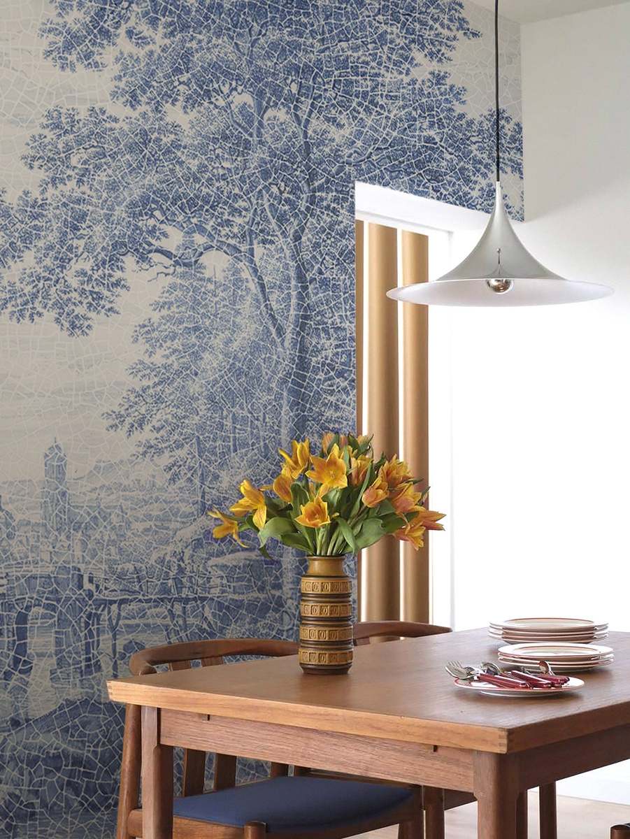 Фотообои дают глубину и атмосферу.