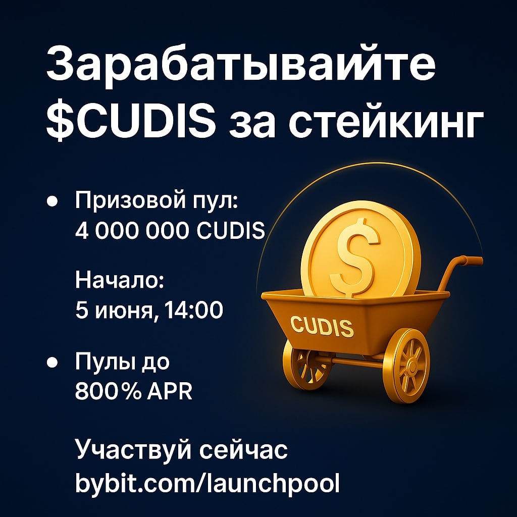 #Bybit 📈 Bybit Launchpool: Стейкинг с наградами в $CUDIS 🗓 Дата запуска: 😮 Начало: 5 июня, 14:00 МСК ▶️ Подготовительный период уже идёт! 💰 Призовой пул: 🟡 4 000 000 $CUDIS 🟡 Общий пул Launchpool: $60+ млн USDT 🟡 Уже участвуют более 5 млн пользователей 🤑 Пулы со ставкой до 800% APR: 🟡CUDIS 🟡BBSOL 🟡USDT (пулы в стейкинге заёмных токенов) 🕘 Участвуйте сейчас: 👉 Перейти к Launchpool ━━━━━━━━━━━━━━━━━━━━━ Наши ресурсы: 🔹 Новостной канал 🔹 YouTube 🔹 RuTube 🔹 Академия 🔹 Boosty 🔹 Закрытое комьюнити 🔹 DeFi