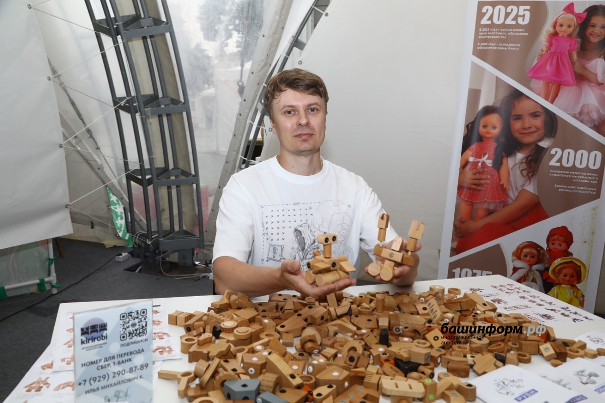 . В Уфе стартовал II Всероссийский фестиваль игрушек и игр «Айда/Әйҙә играть». Он продлится до 8 июня. Как рассказывает ИА "Башинформ", в мероприятии принимают участие 150 отечественных производителей. С самого утра на всех площадках фестиваля можно увидеть тысячи игрушек. Посмотреть их приходят семьями. Здесь в шатрах расположились представители разных городов. Например, производители из Кирово, проводят мастер-классы по сборке роботов, установили театр теней, разложили матрешек для раскрашивания. Ксения Гордиенко из центра «Мой бизнес» рассказала, что уфимский фестиваль способствует популяризации российских игрушек. В их коллекции есть знаменитые куклы фабрики «Весна», будет работать театр теней, несколько предпринимателей привезли игрушки ручной работы, в том числе логопедические игрушки. Илья Кириллов, создатель и автор конструкторов из натурального дерева, рассказал о своём ремесле. Он делает игрушки из натурального гипоаллергенного дерева, тщательно шлифует их. Мастер говорит, чт