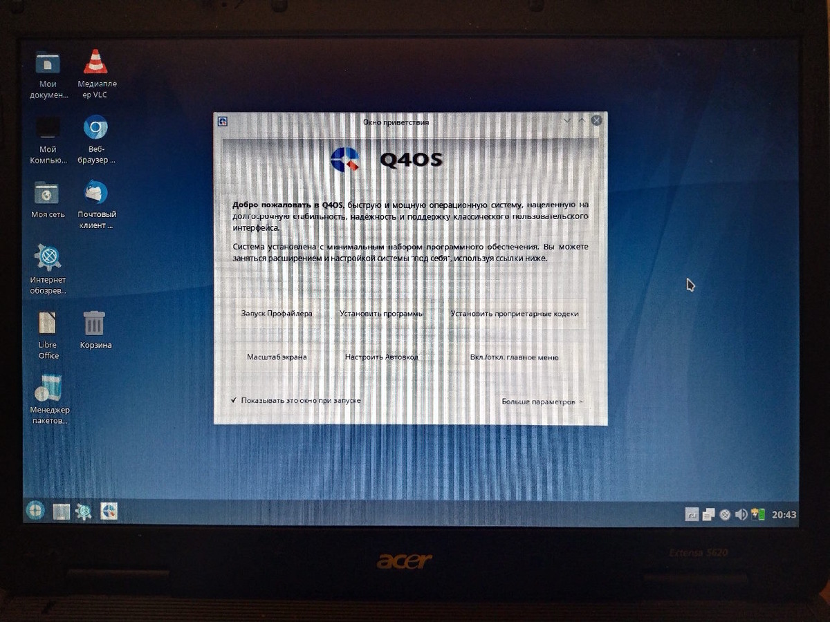 Установил я себе линукс. Для не сильно мощных систем. На свой Acer Extensa. Там два ядра по 1.5 ГГц. И 4гб оперативной памяти. Выбрал в итоге Q4OS. Как легковесный линукс. Для не сильных систем. Со своей графической оболочкой, которая попроще. Называется Тринити. Фирменная разработка авторов этой системы. Специально для того, чтобы система не требовала много ресурсов. Мне, как раз, такая и подошла. С сайта авторов скачивается дистрибьютер. Пишется как загрузочный на флешку. Единственное, что внимательно смотри. Бывают образы Live CD. Это для запуска системы с носителя. Как флешка или компакт диск. А есть установочный загрузочные версии. Вот именно такой для установки надо скачивать. Я, сначала, по невнимательности, Лив СД скачал. И смотрю - что-то нету опции установить систему. Но запустить, зато сразу можно! Удивился. Посмотрел. И понял в чем дело. Процесс установки. Простой и понятный. Ничего хитрого. Ничего сложного. Это хорошо. Установка дружелюбная к пользователю. Шагаем по пункта