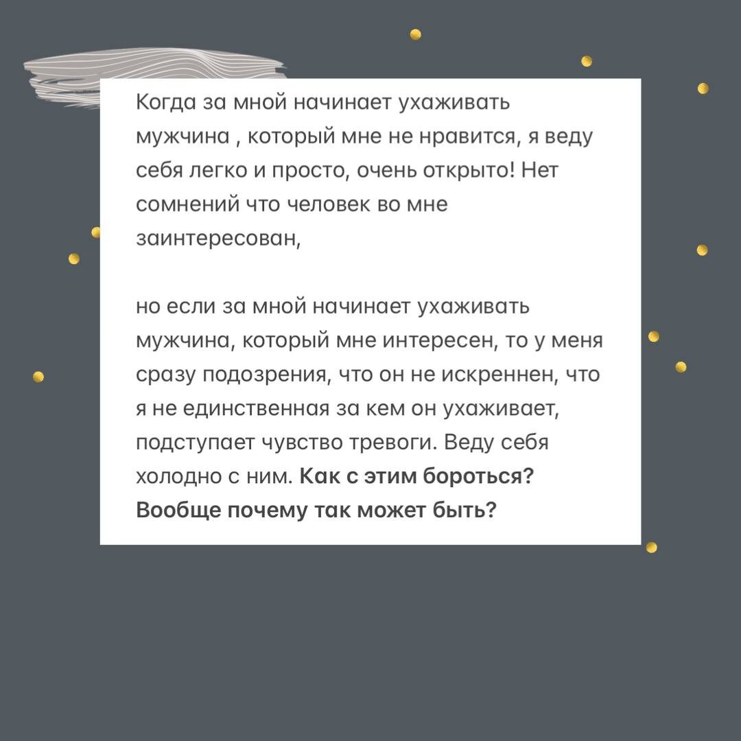 вопрос от подписчицы: Мой ответ: Почему так может быть? ( одна из причин) Мужчина, который не нравится, не имеет значимости для вас. Расстались и расстались. А вот если нравится, то его значимость растет и отсюда боль потери растет прямо пропорционально. Можно заподозрить схему покинутости ( но это нужно исследовать) когда болезненно воспринимается оставление значимым человеком. Подозрения при этом выступают защитным механизмом. То есть вы сразу ищете подвох и стараетесь проконтролировать и не допустить неискренности в ваш адрес. Отсюда рост подозрительности Как бороться? Вступать в отношения с долей недоверия и давать мужчине шансы это доверие завоевать. Отслеживать свои реакции и пояснять себе: это моя психика так меня оберегает. Но так я отношения не построю. Дай-ка посмотрю на его действия и поступки Наберется достаточное количество доверия прибавится #ответы_на_вопросы