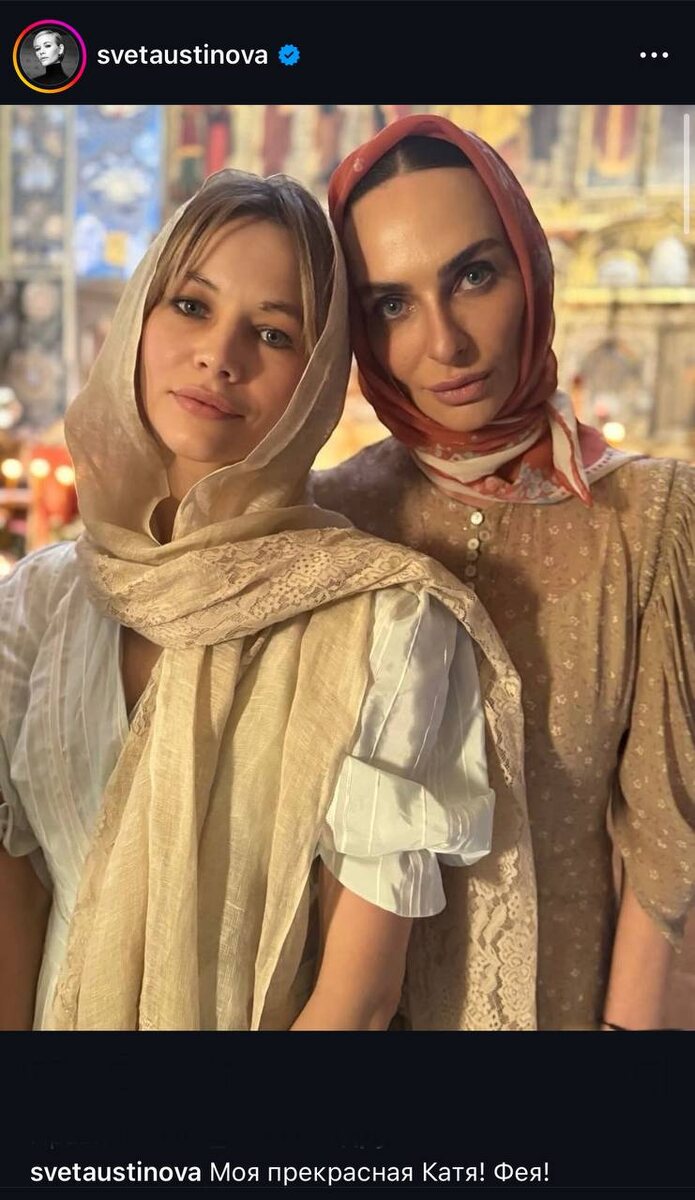 Похоже, Екатерина Варнава стала крёстной мамой дочери Светланы Устиновой, родившейся в декабре прошлого года. Звезда "Бумера" выложила совместное фото с Варнавой из православной церкви, а в комментариях с крещением ребёнка поздравили Анна Чиповская и Надя Оболенцева👀 *скрины из запрещённой экстремисткой соцсети Instagram Spletnik