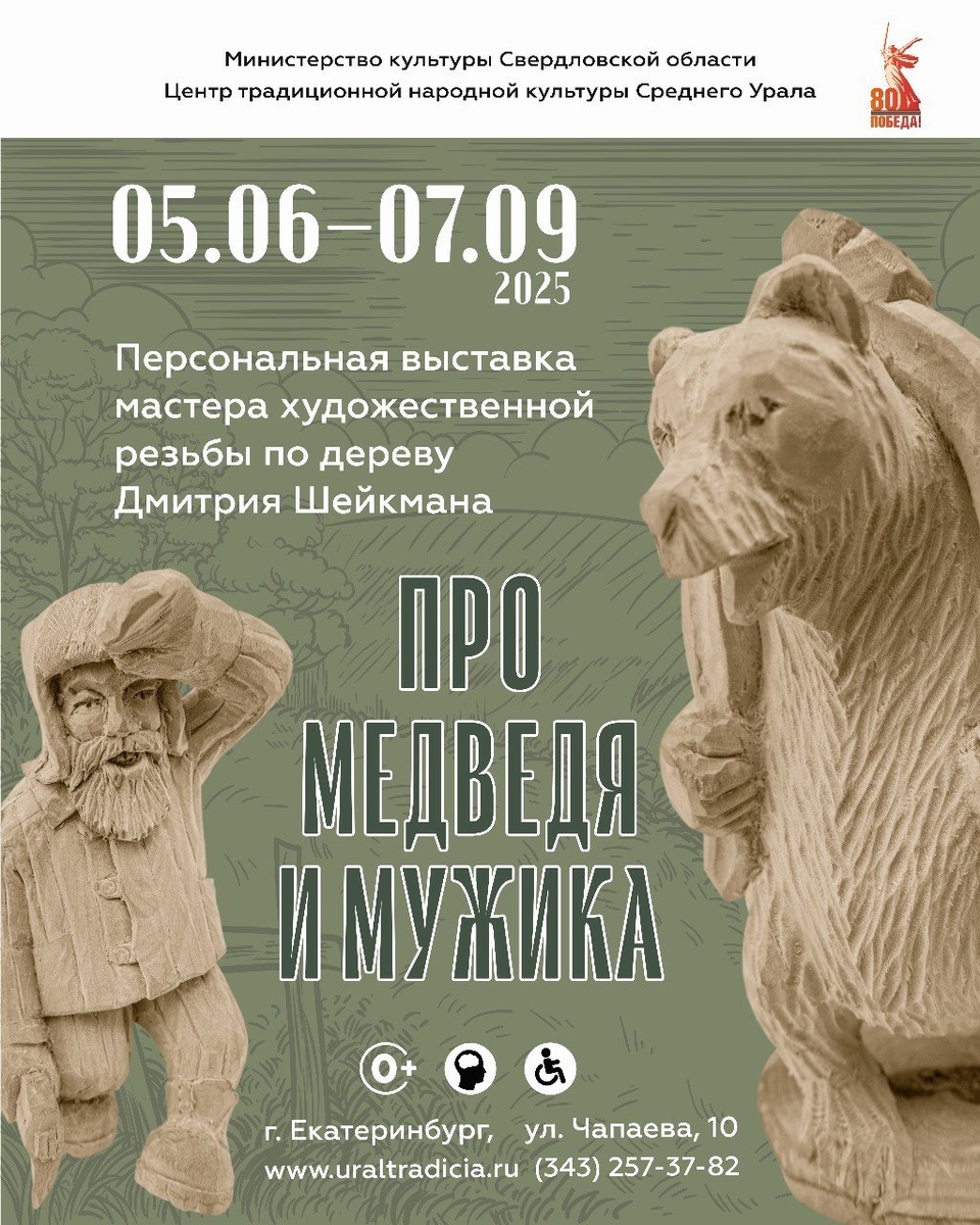 Персональная выставка «Про медведя и мужика» кандидата технических наук, доцента кафедры механической обработки древесины Дмитрия Шейкмана пройдет в Центре традиционной народной культуры Урала. Выставочный проект посвящен творчеству Дмитрия Викторовича – мастера резьбы по дереву, педагога, Хранителя народных художественных промыслов Свердловской области. В работах художника – резных деревянных панно, образцах интерьерной и парковой скульптуры сплетаются мотивы и образы традиционного русского лубка и современного городского фольклора. Мужики и медведи, озорная детвора и девушки в ситцевых сарафанах, веселые гулянья с шествиями ряженых, дымящимися самоварами и хороводами соседствуют как с образами современности – кинокамерами и мотоциклами, программистами и рабочими, так и с образами святых – небесных покровителей земли Уральской. Открытие выставки состоится 06 июня.