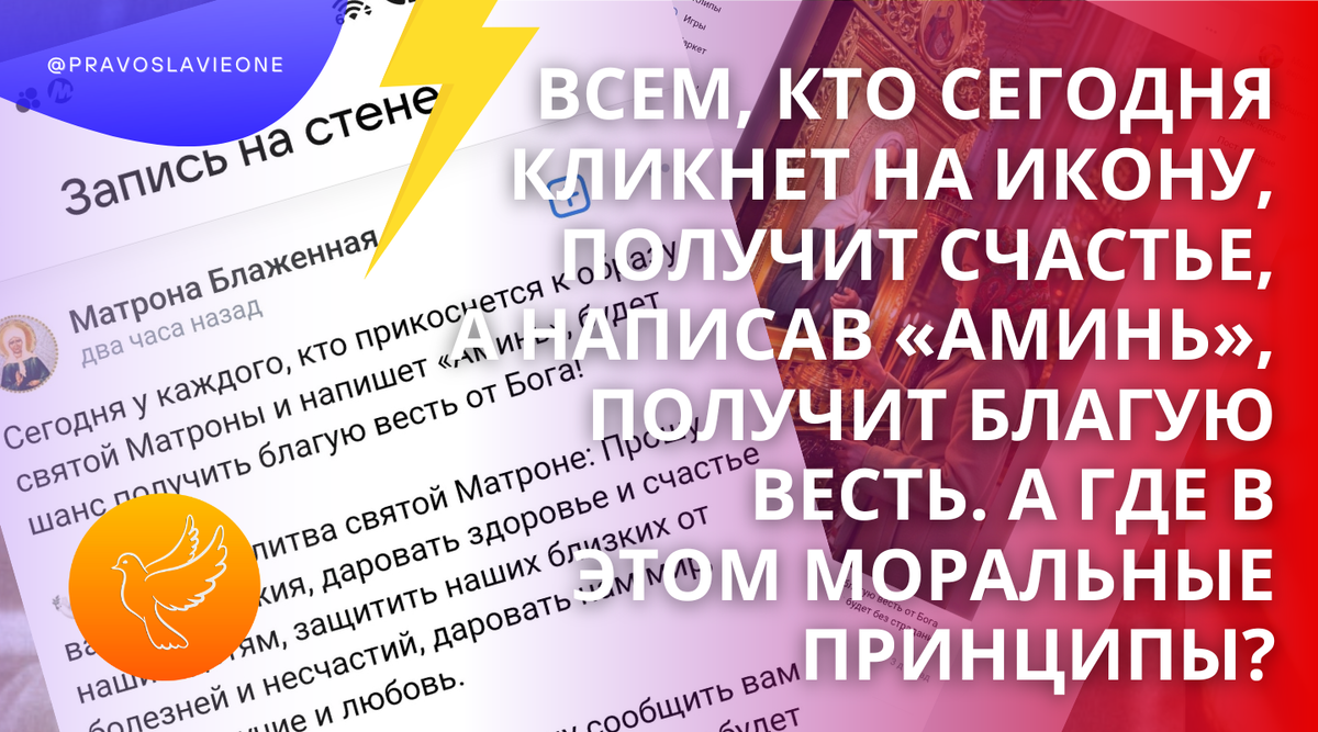 Всем, кто сегодня кликнет на икону, получит счастье, а написав «Аминь», получит благую весть. А где в этом моральные принципы?