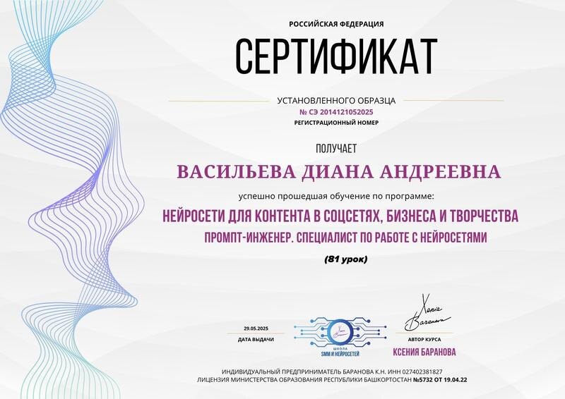 Я не просто вещаю вам про нейросети, как любитель. Я – квалифицированный промт-инженер, теперь и с официальным подтверждением 🥳