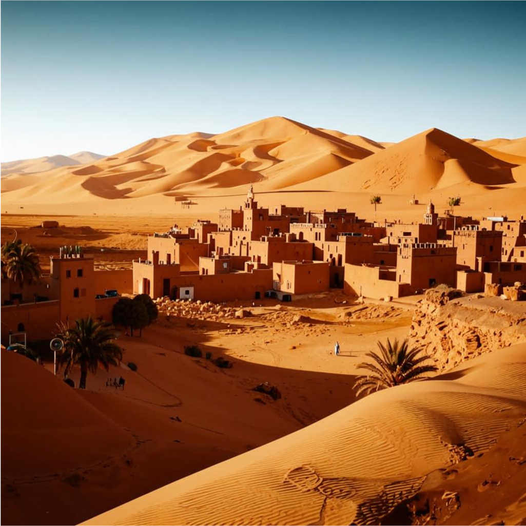Эрг-Шебби — это величественные песчаные дюны, достигающие высоты до 150 метров. Путешествие на верблюде по этим дюнам, особенно на закате, оставляет незабываемые впечатления. Ночёвка в берберском лагере под звёздным небом Сахары — это опыт, который стоит пережить.